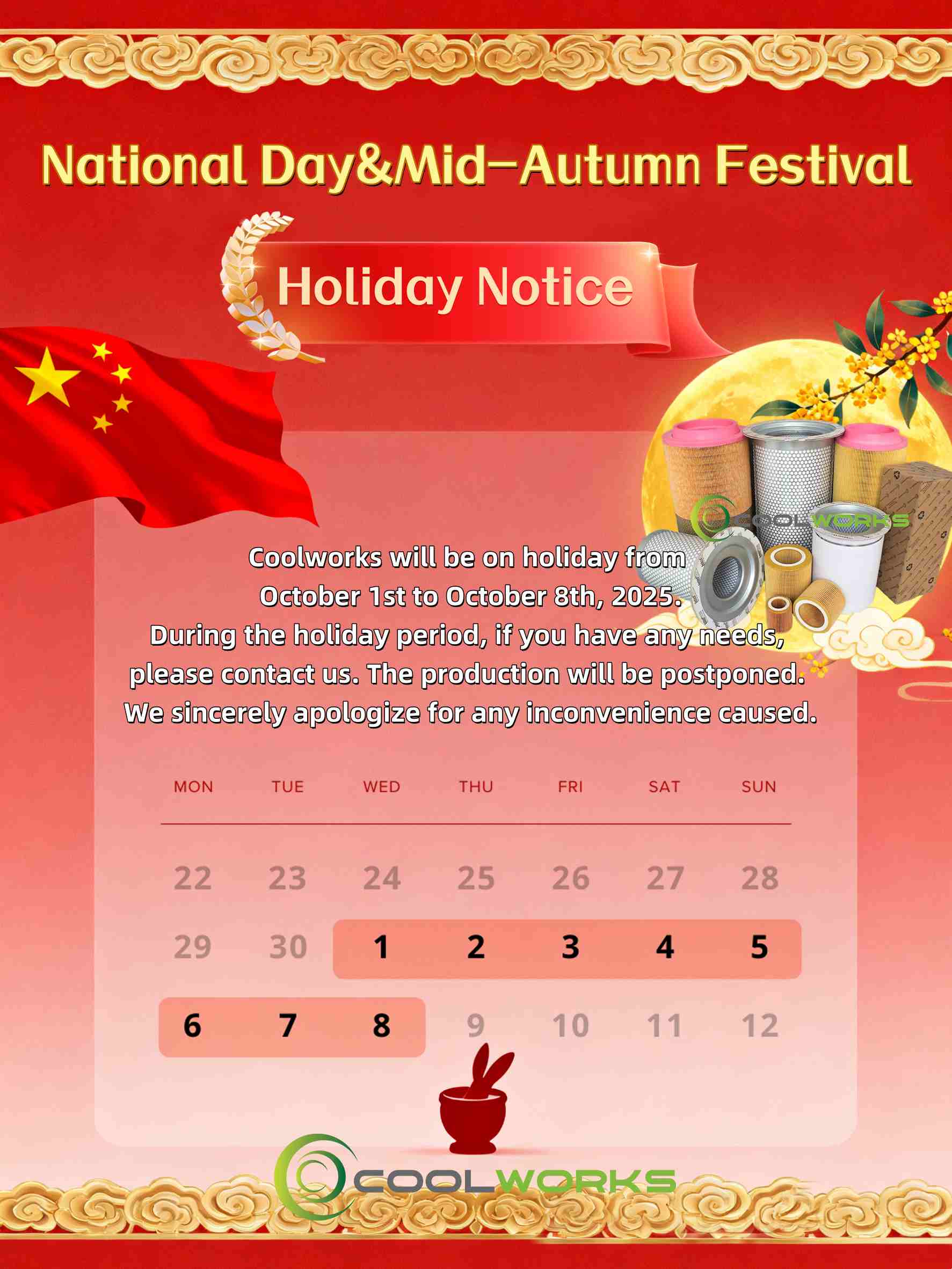 ✨Coolworks will be closed during the National Day and Mid-Autumn Festival holidays,
